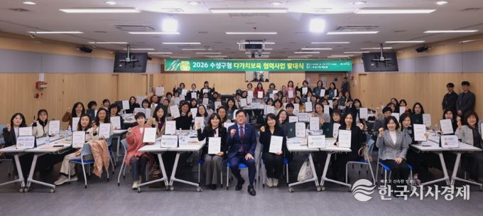 한국시사경제 문화팀 | 대구 수성구는 지난 11일 구청 대강당에서 어린이집 간 협력과 상생을 통한 보육환경 개선을 위해 ‘2026년 수성구형 다가치보육 협력사업 발대식’을 개최했다.