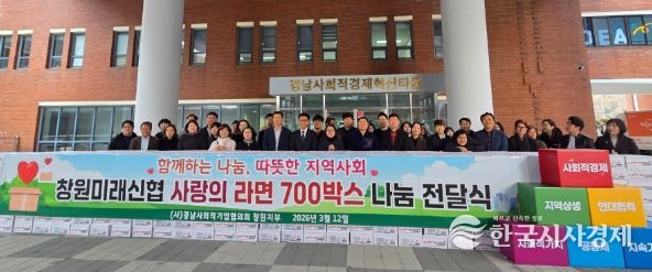 한국시사경제 노승선 기자 | 창원시특례시는 12일 경남사회적경제혁신타운 중앙광장에서 창원미래신협이 (사)경남사회적기업협의회 창원지부에 관내 취약계층을 위한 라면 700박스 기탁 행사를 진행했다고 밝혔다.