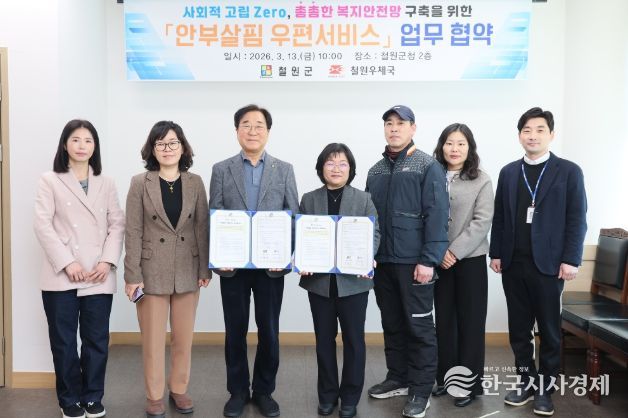 한국시사경제 권충언 기자 | 철원군은 2026년 3월13일 오전 10시, 철원군청 2층 군수 집무실에서 철원우체국(국장 최은애)과 ‘안부살핌 우편서비스’업무협약식을 체결했다.