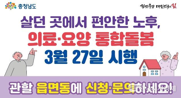한국시사경제 문화팀 | 충남도는 오는 27일부터 시행되는 ‘의료·요양 등 지역 돌봄의 통합지원에 관한 법률’에 대한 도민들의 이해를 돕고, 조기 안착을 지원하기 위해 ‘집중 홍보 주간’을 운영한다고 16일 밝혔다.