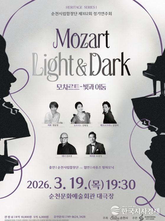 한국시사경제 전남취재본부 | 순천시는 오는 19일 저녁 7시 30분, 순천문화예술회관 대극장에서 순천시립합창단 제102회 정기연주회 ‘모차르트의 빛과 어둠’을 개최한다고 밝혔다.