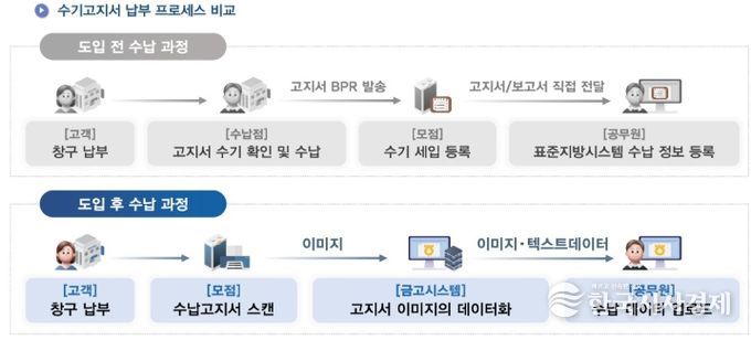 이 시스템은 수기로 작성한 고지서의 문자와 숫자를 자동으로 인식해 전산 데이터로 변환하는 방식이다.