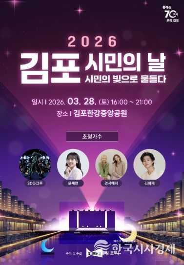한국시사경제 윤광희 기자 | 김포시는 오는 3월 28일 김포한강중앙공원에서 ‘2026년 김포시민의 날 기념행사’를 개최한다고 밝혔다. 이번 행사는 김포시 시승격일(4월 1일)을 기념해 시민의 화합과 자긍심을 높이고, 시의 발전을 함께 기념하기 위해 마련됐다.