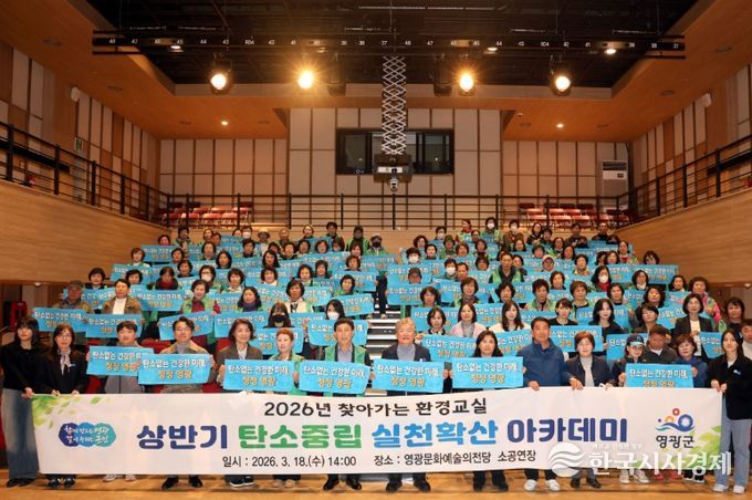 한국시사경제 사회팀 | 영광군은 환경보호에 대한 인식을 높이고 탄소중립 실천문화를 지역사회 전반에 확산하기 위해 지난 18일 새마을회 회원 130여명을 대상으로 ‘상반기 탄소중립 실천확산 아카데미’를 실시했다고 밝혔다.