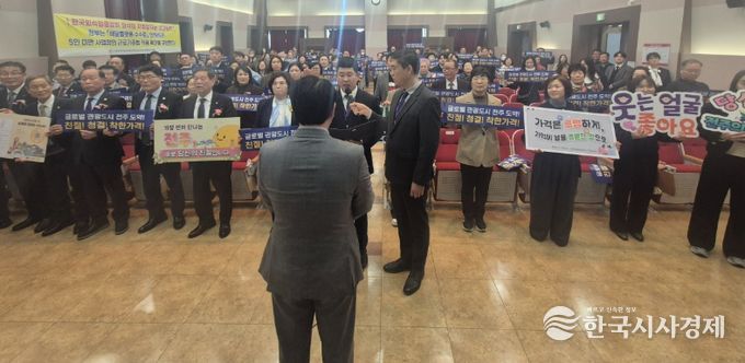 시는 19일 전북지방중소벤처기업청에서 열린 한국외식업중앙회 완산구지부 2026년도 정기총회에서 외국인 관광객 편의 증진을 위한 ‘다국어 메뉴판 지원 릴레이 캠페인’ 및 ‘위생·친절 서비스 실천 결의대회’를 함께 진행했다.
