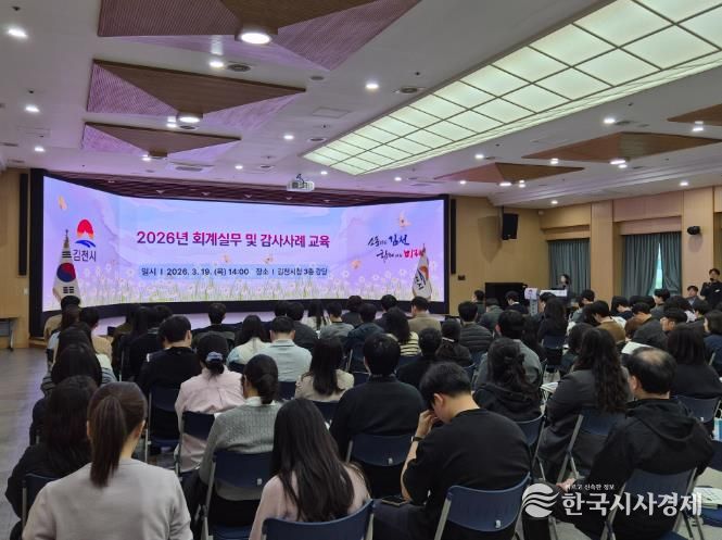 한국시사경제 권충언 기자 | 김천시는 지난 3월 19일 시청 3층 강당에서 실과소, 읍면동 회계관계 공무원 및 8·9급 직원 200여 명을 대상으로 ‘2026년 회계실무 및 감사사례 교육’을 실시했다.