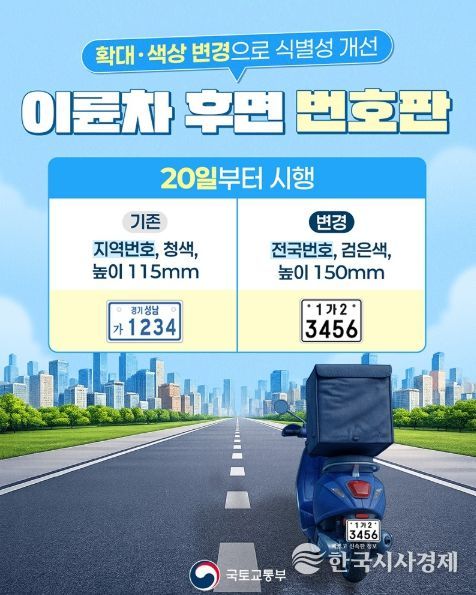 국토교통부, 이륜차 번호판, 더 크게 더 또렷하게 변경!
