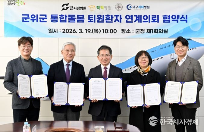 군위군 관계자는 “군위군은 입원의료기관이 없어 외부 의료기관과의 협력이 매우 중요한 지역”이라며 “이번 협약을 통해 병원 치료 이후에도 군민들이 살던 곳에서 안정적으로 생활할 수 있도록 촘촘한 통합돌봄 체계를 구축해 나가겠다”고 밝혔다.