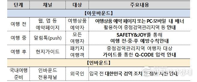 이번 업무협약은 여행자 건강 중심 검역체계 구축(’25.12월 발표)의 일환으로 추진된다. 여행객이 가장 먼저 접하는 여행사 채널을 통해 감염병·건강정보를 효과적으로 전달하고 스스로 건강을 챙기는 해외여행 문화를 확산하는데 목적이 있다.