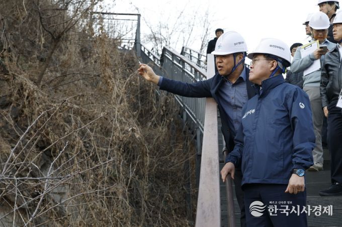 한국시사경제 기동취재팀 | 진교훈 서울 강서구청장이 20일 해빙기 안전사고 예방을 위해 직접 급경사지 안전점검에 나섰다.