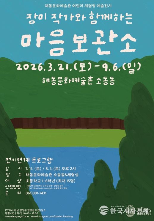 한국시사경제 권충언 기자 | 담양군문화재단 해동문화예술촌이 지난 3월 21일 2026 상반기 기획전시와 어린이 체험형 예술전시를 개최했다고 밝혔다.
