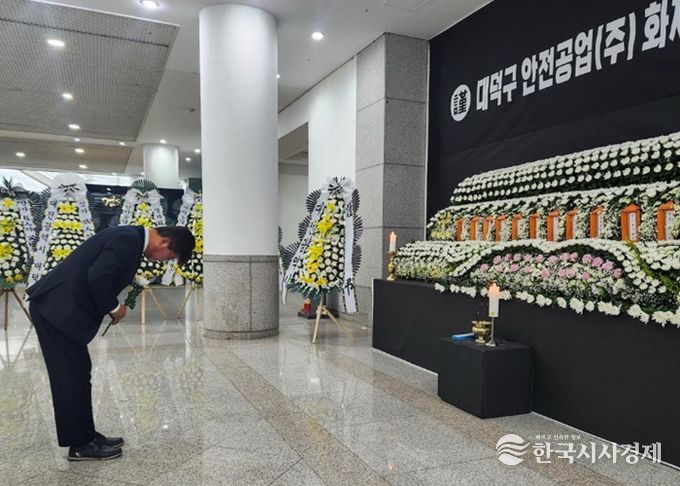 한국시사경제 대전취재본부 | 대전 대덕구는 문평동 안전공업 화재 희생자들을 추모하기 위해 합동분향소를 찾아 조문했다고 밝혔다.
