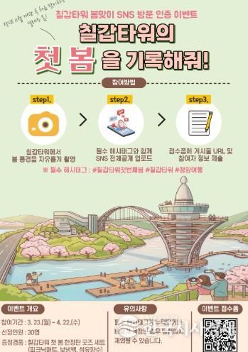 ‘칠갑타워의 첫 봄을 기록해줘’라는 부제로 열리는 이번 이벤트는 지난해 11월 개관한 칠갑타워가 처음 맞이하는 봄 시즌을 널리 알리고 방문객들에게 특별한 추억을 선사하기 위해 기획됐다.