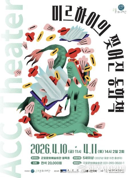 한국시사경제 기동취재팀 | 군포문화재단은 어린이와 가족이 함께 관람할 수 있는 공연 '미르하이의 찢어진 동화책'을 4월 10일~11일 군포문화예술회관 철쭉홀에서 개최한다고 밝혔다. 이번 공연은 2026 국립아시아문화전당재단 어린이 공연 유통 공모사업의 일환으로, 국립아시아문화전당(ACC) 창·제작 어린이 공연을 지역에 소개하기 위해 마련됐다.