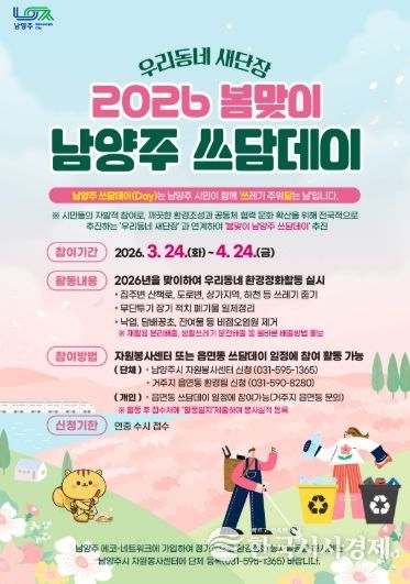 ‘남양주 쓰담데이’는 시가 운영하는 대표 시민참여형 환경정화 프로그램으로, 자원봉사단체와 지역사회단체, 상인회, 군부대 등 277개 기관단체가 참여한다.이번 활동은 행정안전부가 추진하는 전국 단위 환경정화 캠페인‘우리동네 새단장’과 연계해 추진됐다.