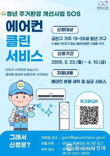 한국시사경제 기동취재팀 | 금천구는 여름철을 앞두고 청년가구의 쾌적한 생활환경 조성을 위해 ‘에어컨 클린서비스’ 사업을 추진한다고 밝혔다.