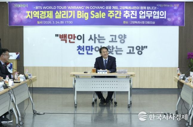 시는 지난 24일 시청 대회의실에서 ‘지역경제 살리기 빅 세일 주간’ 추진을 위한 업무협의를 개최했다. 회의에서는 BTS 월드투어 고양 콘서트의 성공적 개최를 기원하고, 지역 경제 활성화와 민생회복 계기를 마련하기 위한 지역경제 살리기 빅 세일 주간을 자발적인 시민 참여형 이벤트로 추진하는 방안을 논의했다.
