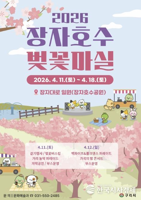 한국시사경제 경기취재본부 | 구리시는 오는 4월 11일부터 18일까지 8일간 장자대로 일원(장자호수공원)에서 ‘2026 장자호수 벚꽃마실’을 개최한다고 밝혔다.