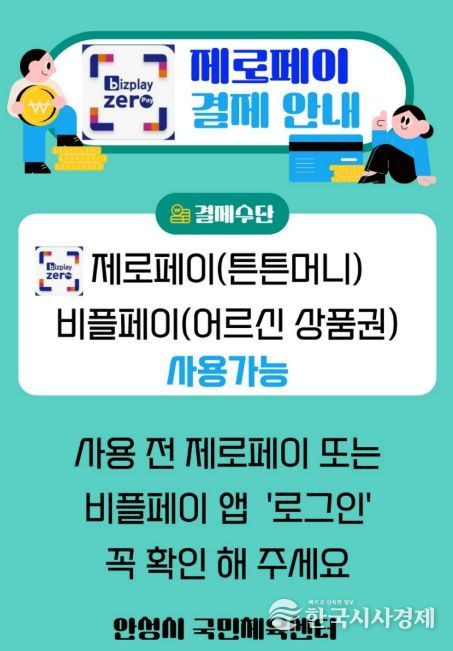 한국시사경제 경기취재본부 | 안성시시설관리공단에서 운영하는 안성시 국민체육센터는 오는 3월 23일부터 제로페이를 통한 튼튼머니 및 어르신 상품권 결제 서비스를 시행한다고 밝혔다.
