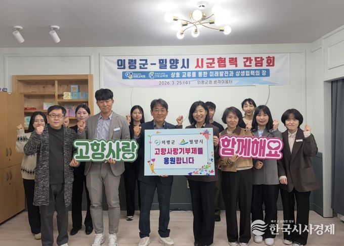 한국시사경제 윤광희 기자 | 의령군은 25일 군청에서 밀양시와 시군협력 간담회를 열고 미래교육 분야 협력과 상생발전 방안을 논의했다고 밝혔다.