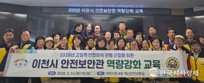 한국시사경제 기동취재팀 | 이천시는 지난 25일 이천시청 재난안전상황실에서 이천시 안전보안관을 대상으로 안전보안관 역량교육을 추진했다고 밝혔다.