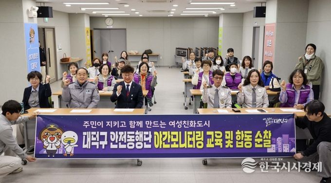 한국시사경제 대전취재본부 | 대전 대덕구는 27일 주민 참여를 통한 안전한 마을 환경 조성을 위해 송촌동 일원에서 ‘안전동행단 야간모니터링 교육 및 합동순찰’을 실시했다고 밝혔다.