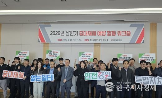 한국시사경제 권충언 기자 | 강원특별자치도는 3월 27일 오후 1시 춘천 베어스호텔에서 도·시군, 고용노동부 등 관계자 50여 명이 참석한 가운데 ‘2026년 상반기 중대재해 예방 합동 워크숍’을 개최했다. 이번 워크숍은 중대재해처벌법 엄정 대응 기조에 맞춰 실질적인 사고 예방과 현장 실무자의 대응 역량 강화를 위해 마련됐다.