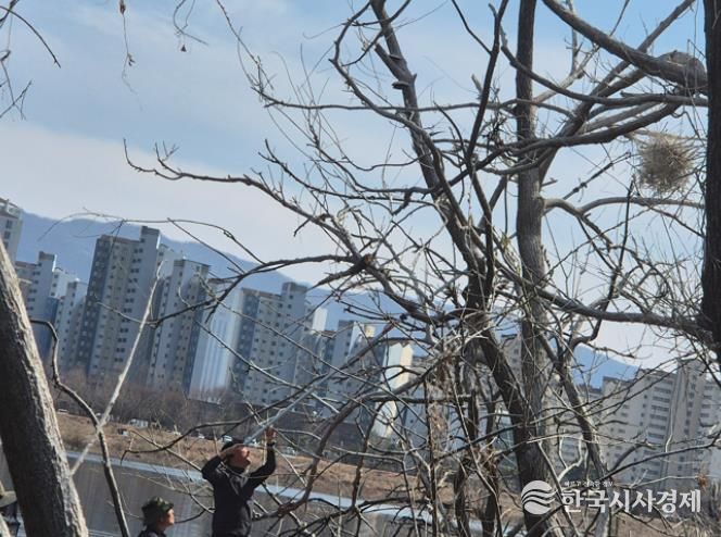 이날 작업을 통해 200여 개 이상의 묵은 둥지를 제거하고 수목 세척도 병행했다.