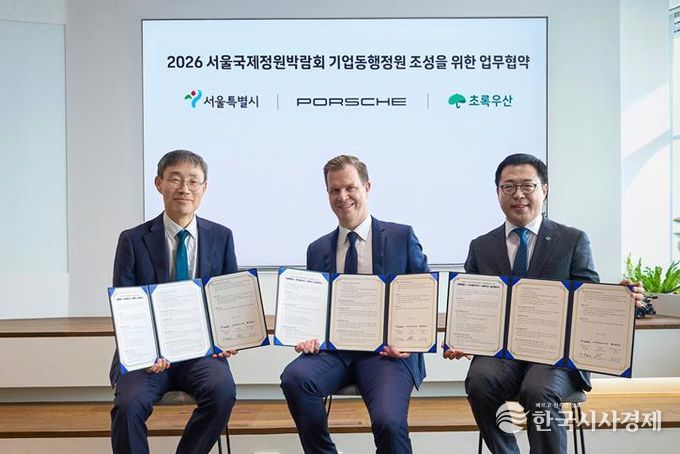 한국시사경제 사회팀 | 서울시는 5월 1일 개막하는 ‘2026 서울국제정원박람회’를 위해 포르쉐코리아, 초록우산과 함께 3월 27일 포르쉐코리아 본사에서 ‘기업동행정원’ 조성을 위한 업무협약(MOU)을 체결했다.