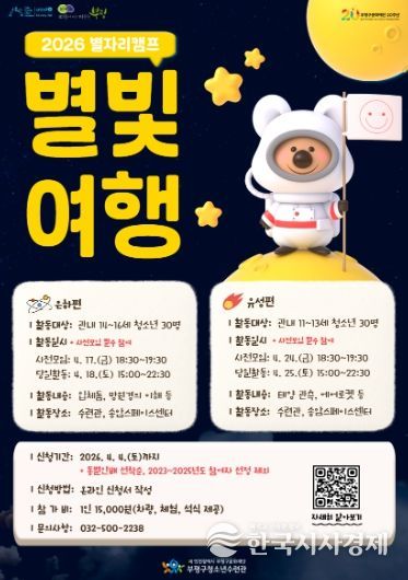 한국시사경제 문화팀 | 부평구청소년수련관은 지역 내 11~16세 청소년을 대상으로 천문 과학 별자리 체험 프로그램인 2026 별자리캠프 ‘별빛여행’ 참가자를 모집한다.