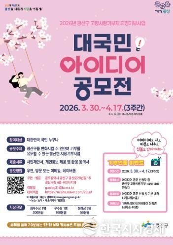 한국시사경제 광주취재본부 | 광주 광산구가 ‘2026년 광산구 고향사랑기부제 지정기부사업 대국민 아이디어 공모’를 오는 4월 17일까지 진행한다.