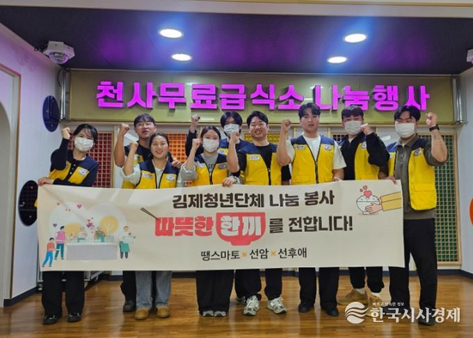 시는 30일, 청년단체 땡스마토, 선암, 선후애 소속 청년들과 성장전략실 직원들이 함께 김제천사무료급식소에서 배식 봉사활동을 진행했다고 밝혔다.