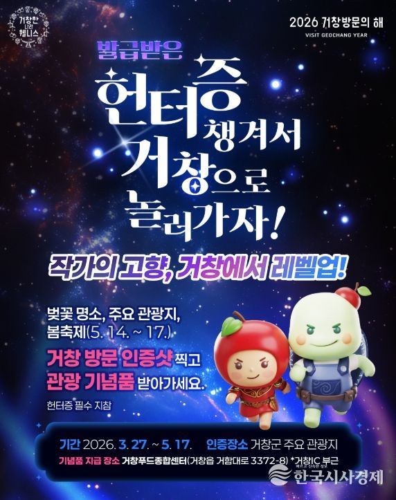 한편, ‘2026 거창방문의 해’ 관련 이벤트와 관광정보는 거창군 문화관광 누리집과 공식 SNS를 통해 확인할 수 있다.