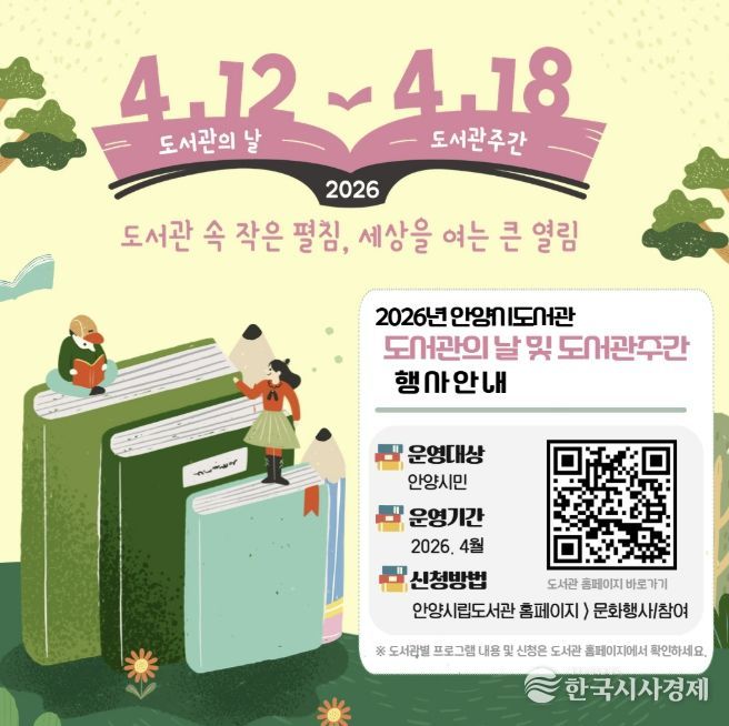 한국시사경제 기동취재팀 | 안양시 관내 10개 공공도서관이 제4회 ‘도서관의 날’과 제62회 ‘도서관 주간’을 맞아 ‘도서관 속 작은 펼침, 세상을 여는 큰 열림’이라는 주제로 다채로운 독서문화행사를 개최한다.