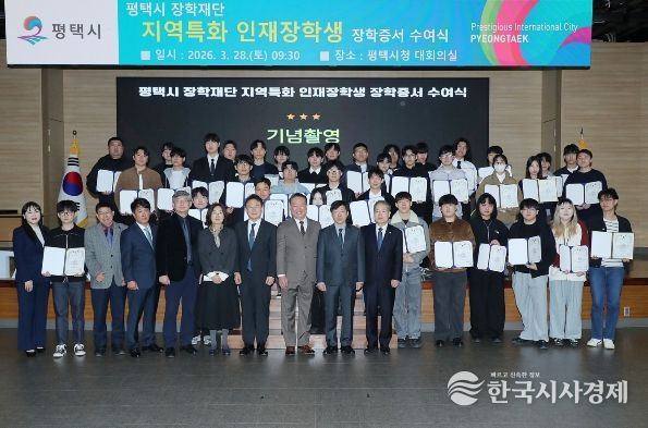 한국시사경제 사회팀 | 평택시 장학재단은 지난 3월 28일 평택시청 대회의실에서 '2026년도 지역특화 인재 장학생 장학증서 수여식'을 개최했다.