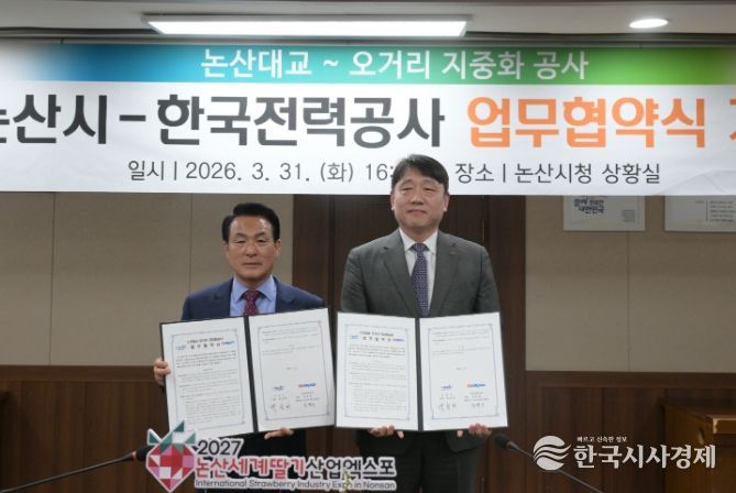 한국시사경제 김태훈 기자 | 논산시는 31일 시청 상황실에서 한국전력공사(KEPCO)와 ‘논산대교~오거리 전주 지중화 사업’ 추진을 위한 업무협약을 체결했다.