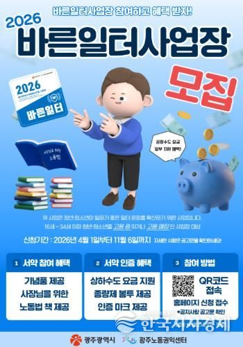 한국시사경제 광주취재본부 | 광주시는 청년과 청소년이 안심하고 일할 수 있는 노동환경 조성을 위해 ‘2026년 바른일터 사업장’을 모집한다.