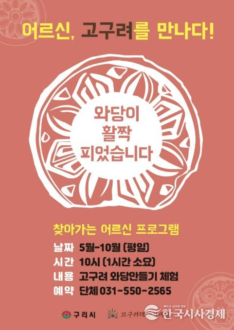 구리시 관계자는 “이번 프로그램을 통해 어르신들이 고구려 문화를 직접 체험하며 활력 있는 시간을 보내시길 바란다”라며 “세대 간 문화 향유 격차를 해소하고 우리 역사에 대한 자긍심을 높이는 계기가 되길 기대한다”라고 밝혔다.