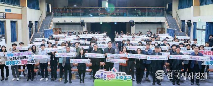 한국시사경제 윤광희 기자 | 인천 미추홀구는 1일 2026년도 2분기 직원 조회를 열고 ‘인천해사국제상사법원(이하 해사법원) 미추홀구 유치’를 위한 캠페인을 개최했다.