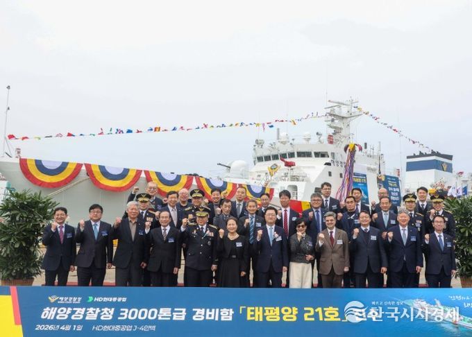 한국시사경제 김숙영 기자 | 해양경찰청은 4월 1일, 울산광역시 동구에 소재한 HD현대중공업㈜에서 3000톤급 신형 경비함 태평양 21호(3021함)의 진수식을 개최했다.