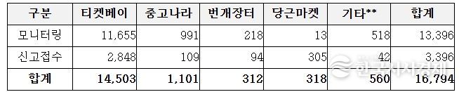 2026년 2월부터 3월까지 프로야구 암표 신고·모니터링 결과, 약 1만 6천여 건이 확인됐다. 특히 개막전(3. 28.~29.) 전후로는 정가 대비 최대 약 13배 고액 거래, 동일 계정 다량 좌석 확보 및 재판매 등 조직적 거래 정황이 다수 확인됐다. 이 중 다량·연석 판매, 과도한 웃돈 거래, 동일 계정 반복 거래 등 부정거래 의심 사례를 분석․파악해 경찰청에 수사를 의뢰했다.