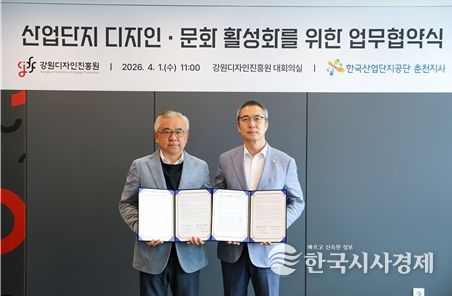 한국시사경제 권충언 기자 | 강원디자인진흥원은 1일 강원디자인진흥원 대회의실에서 한국산업단지공단 강원지역본부 춘천지사와 산업단지 내 디자인·문화 활성화를 위한 공동사업 추진 업무협약을 체결했다고 밝혔다.