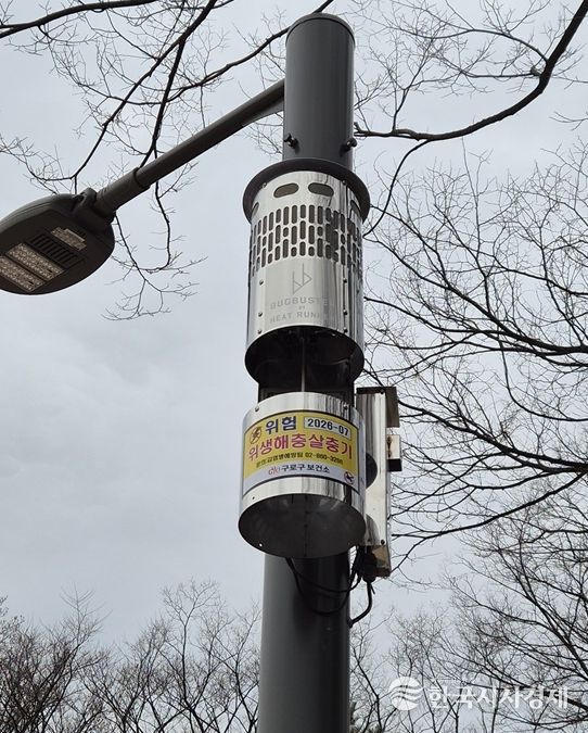 한국시사경제 기동취재팀 | 구로구가 모기 등 위생해충으로 인한 주민 불편을 줄이고 감염병을 예방하기 위해 관내 공원 3곳에 포충기 13대를 설치했다.