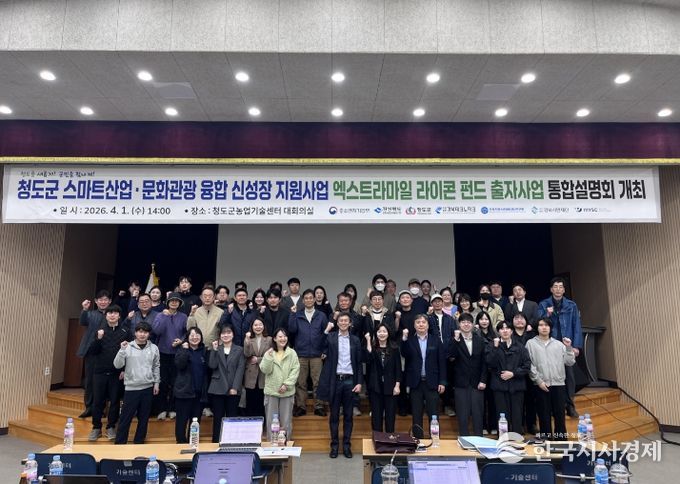 한국시사경제 권충언 기자 | 청도군은 지난 1일 청도군 농업기술센터 대회의실에서 지역 중소기업, 소상공인, 청년 창업가 등 100여 명이 참석한 가운데 ‘청도군 스마트산업·문화관광 융합 신성장 지원사업’과‘엑스트라마일 라이콘펀드’ 통합 사업설명회를 개최했다고 밝혔다.