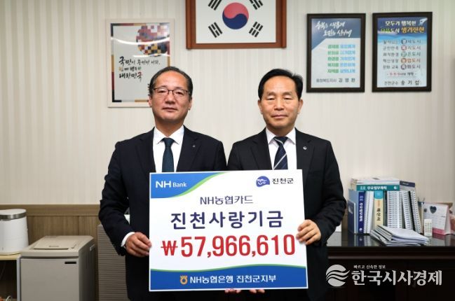 한국시사경제 오영주 기자 | NH농협은행 진천군지부는 2일 진천군청을 방문해 2025년도 제휴카드 사용에 따른 적립 기금 5천796만 원을 진천군에 전달했다.