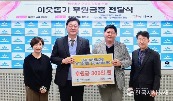 이날 후원된 성금은 총 300만 원으로, ㈜서강엔지니어링, ㈜그린자원, ㈜지앤에스환경 3사가 뜻을 모아 각각 100만 원씩 마련했다. 전달된 성금은 미추홀구 내 저소득층 및 복지 사각지대에 놓인 취약계층을 위한 다양한 지원 사업에 사용될 예정이다.