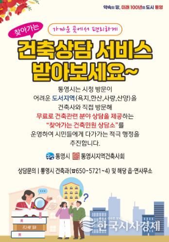 한국시사경제 경남취재본부 | 통영시는 경제적, 시간적 부담으로 인해 시청 방문이 어려운 도서지역(욕지, 한산, 사량, 산양) 시민을 대상으로 건축사와 직접 방문해 무료로 건축 관련 분야 상담을 제공하는 ‘찾아가는 건축민원 상담실’을 운영해 시민들에게 다가가는 적극행정을 추진한다고 2일 밝혔다.