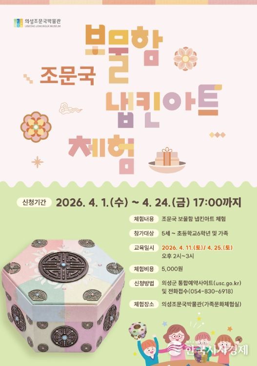 체험은 오는 4월 11일과 4월 25일 오후 2시부터 3시까지 의성조문국박물관 가족문화체험실에서 진행되며, 5세부터 초등학교 6학년까지의 어린이와 가족을 대상으로 한다. 참가비는 5,000원이다.