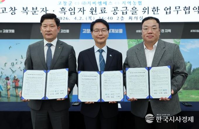 한국시사경제 김숙영 기자 | 고창군이 지난 2일 오후 군청2층 회의실에서 고창군·㈜지비엠에스·지역농협 5개소와 ‘고창 복분자·흑임자 원료 공급 및 상생발전 업무협약(MOU)’을 체결했다.