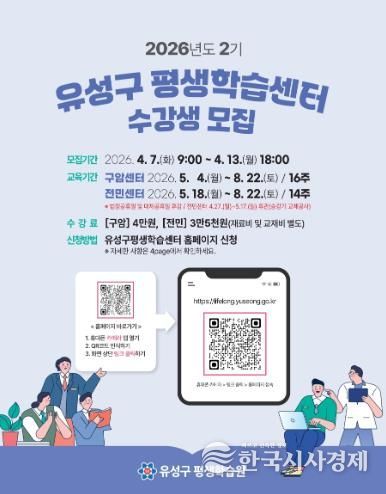 한국시사경제 대전취재본부 | 대전 유성구는 오는 7일부터 13일까지 구암평생학습센터와 전민평생학습센터에서 ‘2026년 2기 평생학습센터’ 수강생을 모집한다.